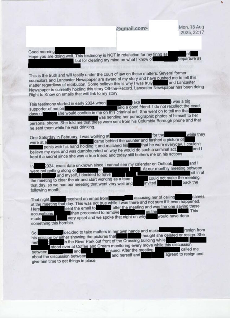ColumbiaPA.online is issuing this statement regarding a recently circulated email that has drawn community attention. The owner of the email has granted full permission for it to be published. However, it is important for readers to understand the following: